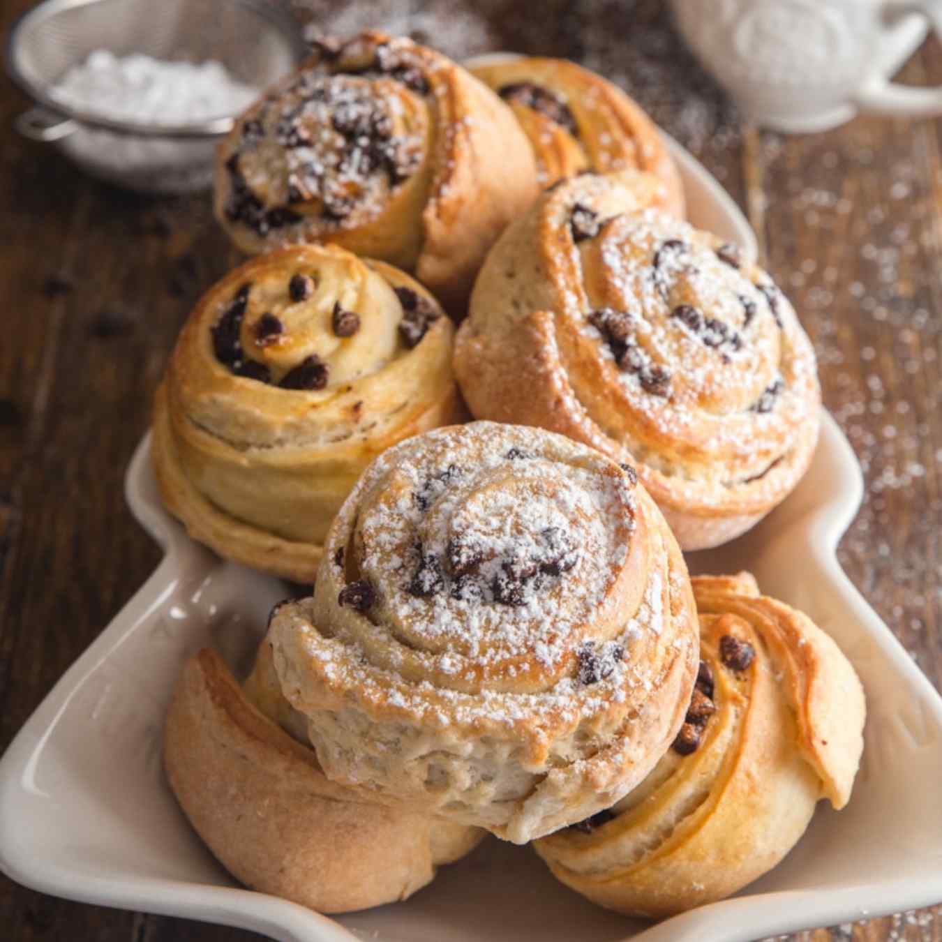Dùng một cái bát, trộn bột mì với vỏ hạt mã đề, Swerve, bột nở, muối, quế, đinh hương, vụn sôcôla và trộn đều