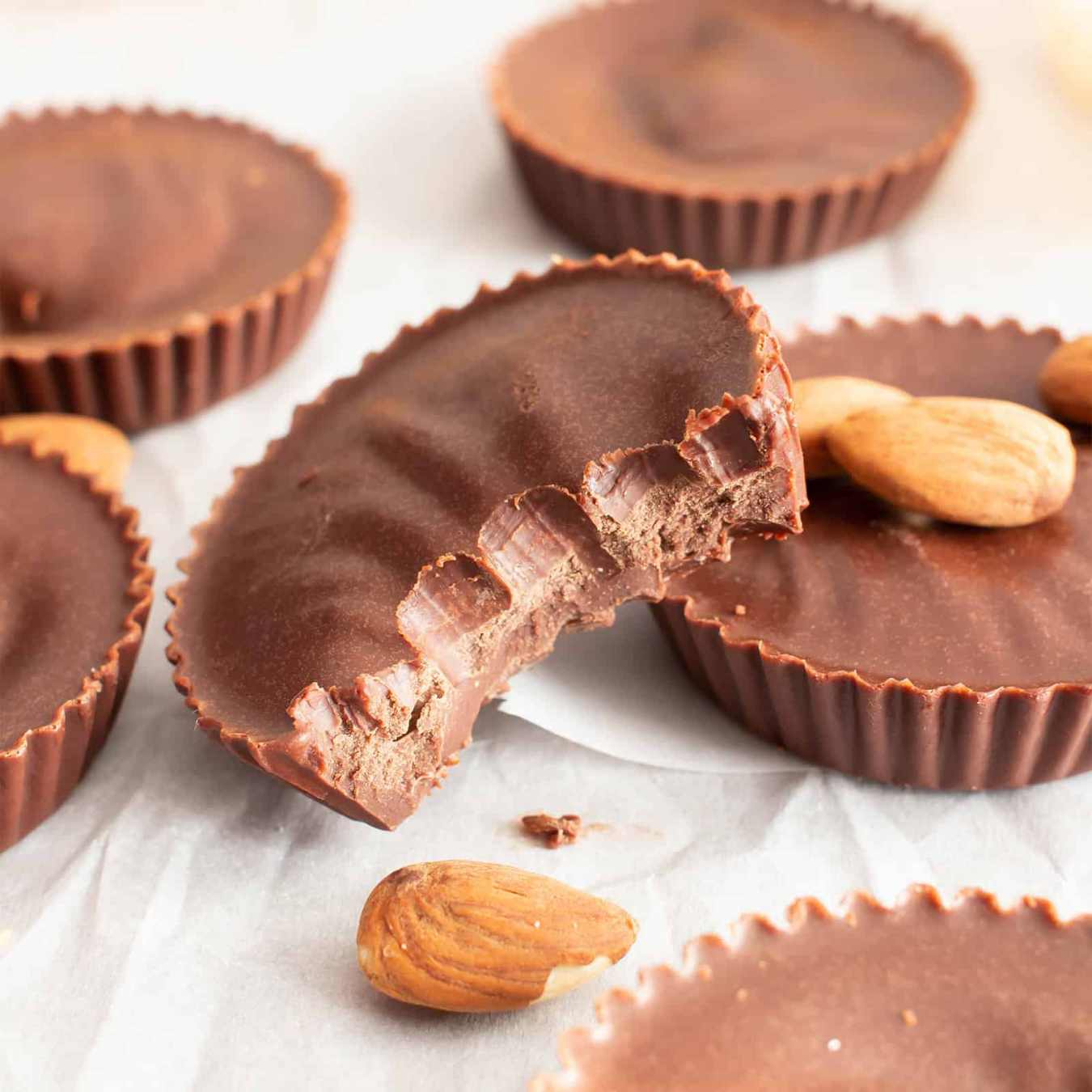 Đổ hỗn hợp hạnh nhân vào khuôn silicone. Cho vào tủ lạnh cho đến khi đông cứng