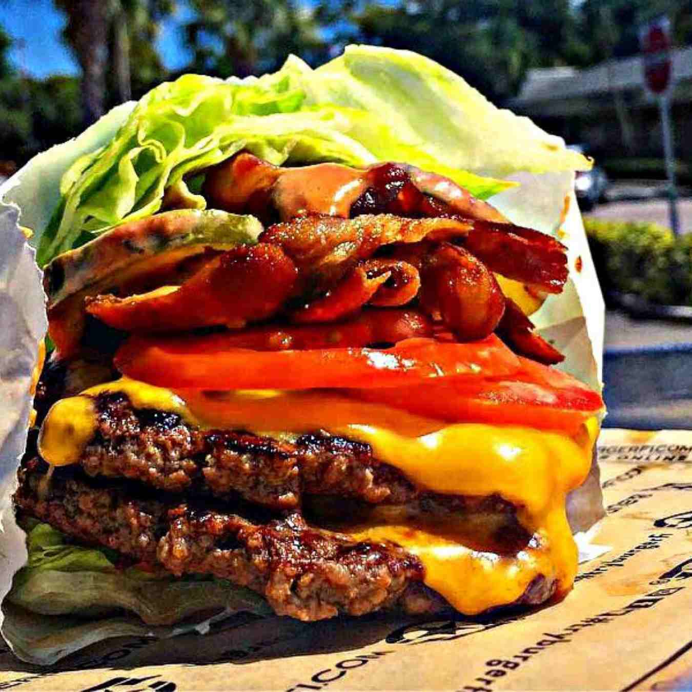 Làm tương tự với phần lá rau diếp, chả thịt, hành tây, thịt heo xông khói và nước sốt còn lại