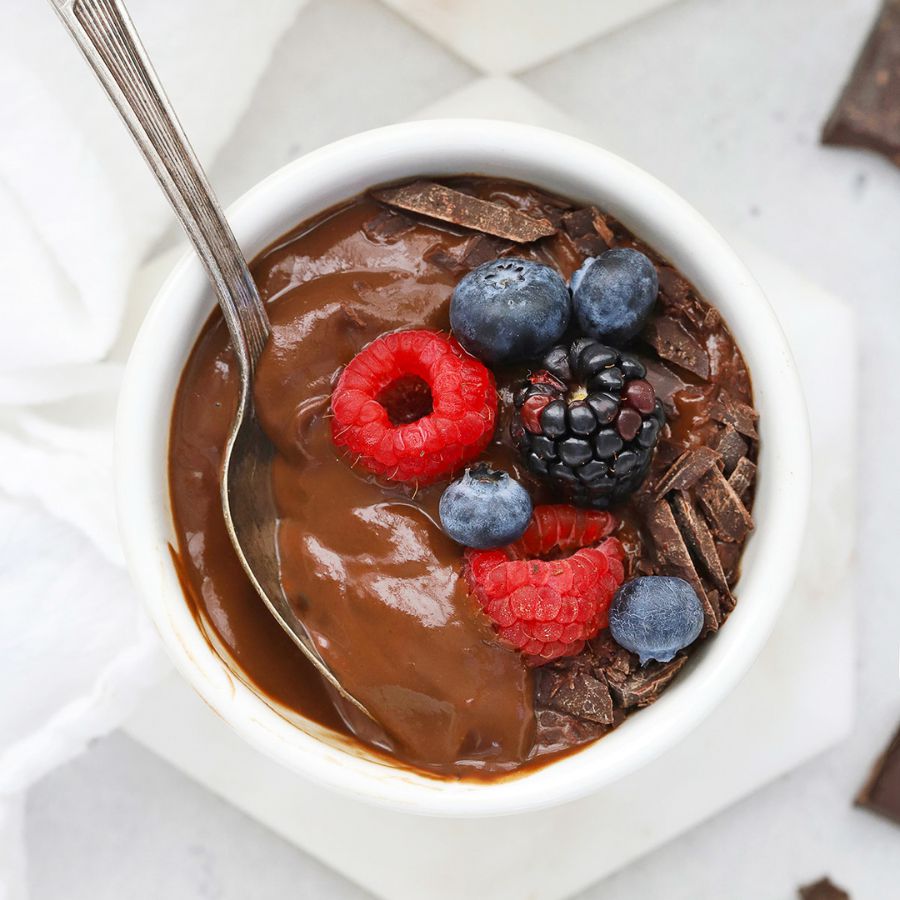 Dùng máy xay sinh tố, xay đều quả mọng với ca cao và các thành phần nguyên liệu khác, xay nhuyễn, chia vào bát và để trong tủ lạnh 2 giờ trước khi dùng