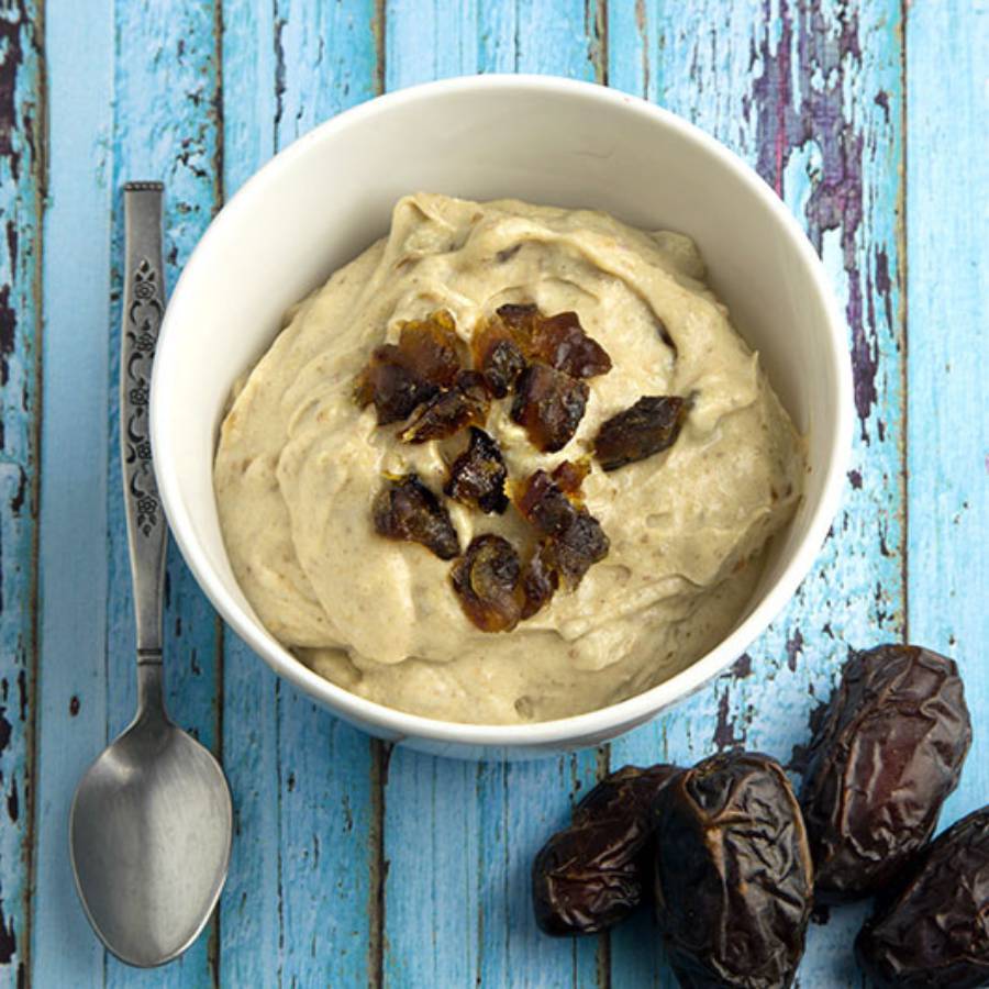 Dùng máy xay sinh tố, trộn kem dừa với đường Stevia, chà là và các thành phần nguyên liệu khác, xay nhuyễn, chia thành từng cốc và để trong tủ lạnh 30 phút trước khi dùng