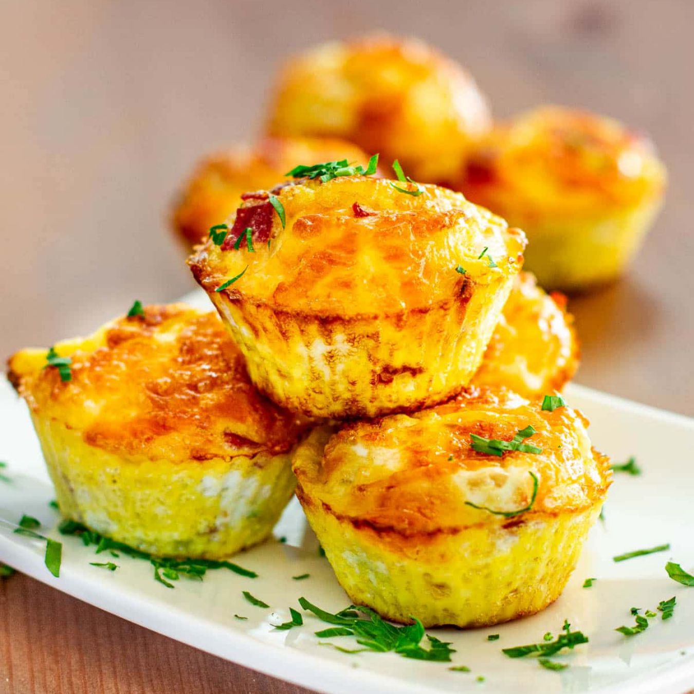Đổ đầy mỗi cốc Muffin với hỗn hợp gồm ½ tbsp gà và 1 tbsp rau, sau đó đổ lòng trắng trứng lên trên và rắc phần ớt bột còn lại rồi nướng trong 25 phút