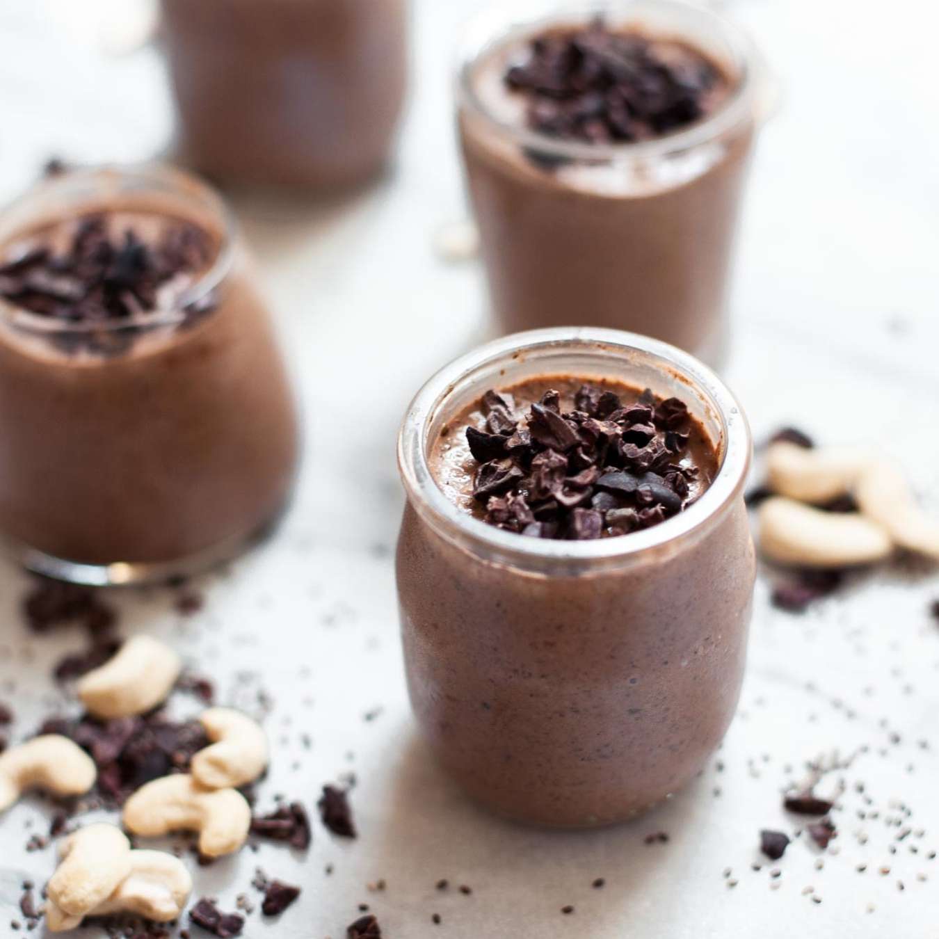 Thêm chiết xuất vani, kem dừa, đường Swerve, hạt cacao Nibs, hạt chia vào khuấy đều, để trong tủ lạnh 30 phút, chia vào 2 cốc và thưởng thức