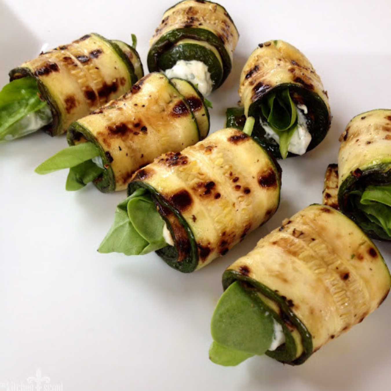 Phết lên trên lát bí ngòi, cho lá húng quế, sau đó cuộn và dùng làm món khai vị