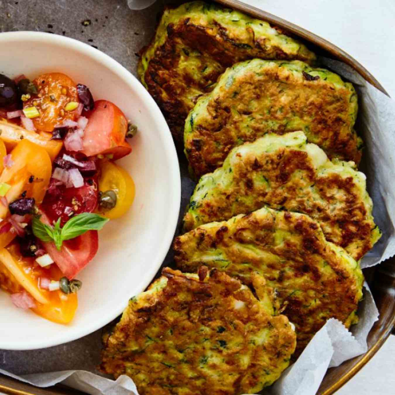 Dùng một cái bát, trộn bí ngòi với cà chua và các thành phần nguyên liệu khác (trừ dầu ăn), trộn đều, nặn hình miếng chả cỡ vừa và cán phẳng