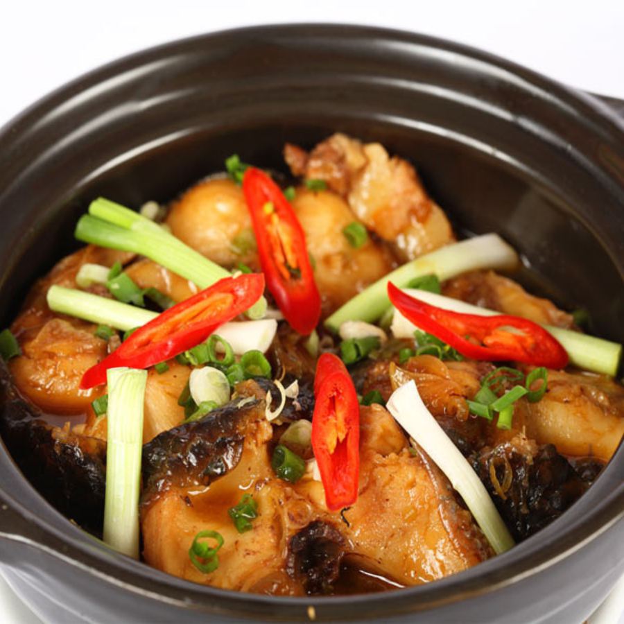 Đun nhỏ lửa cho cạn nước, thêm mỡ nước và hạt tiêu. Kho cho đến khi cá có màu đỏ nâu sẫm, mùi thơm của riêng, thịt cá rắn chắc, khô. Ăn nóng hoặc ăn nguội