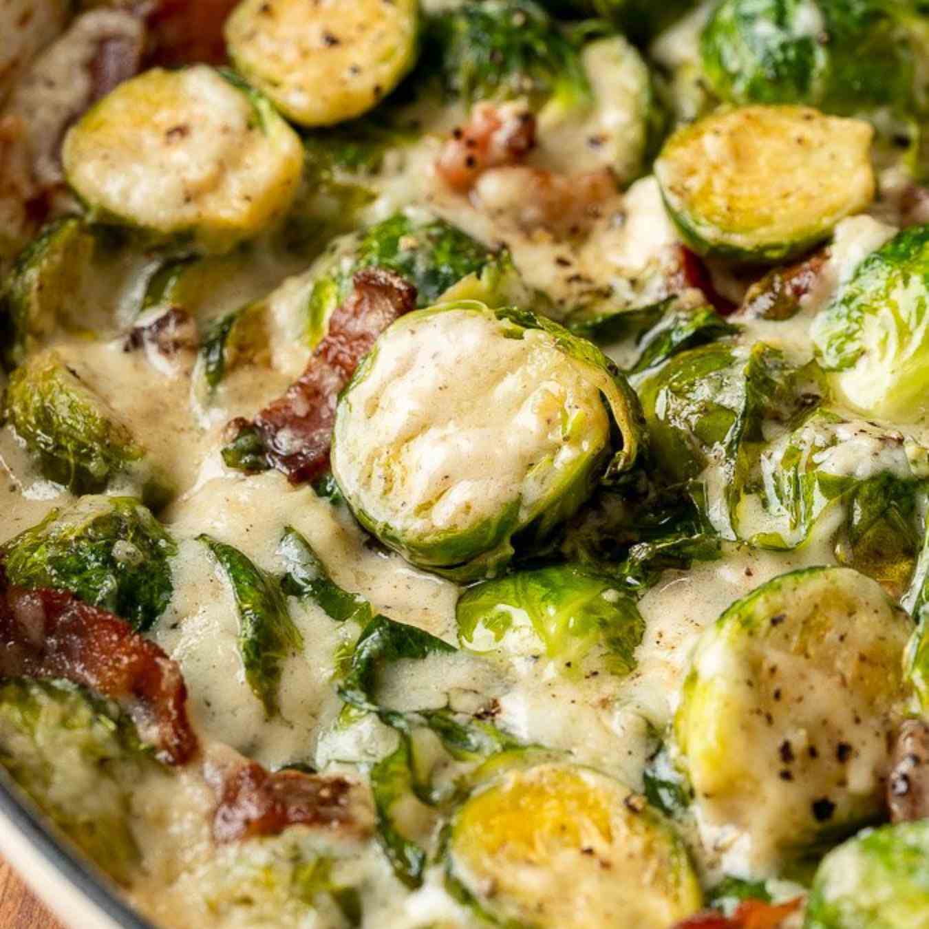 Cải Brussels nướng với thịt heo xông khói