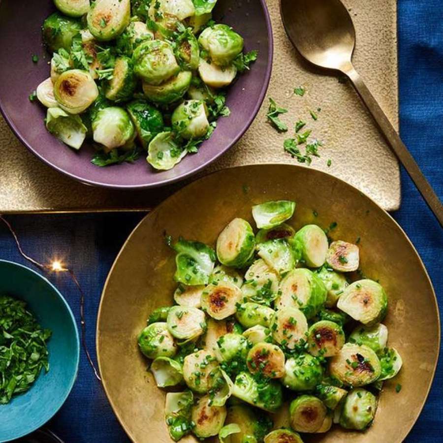Cho cải Brussels và các nguyên liệu khác vào, đảo đều, nấu trên lửa vừa trong 20 phút nữa, chia ra đĩa và thưởng thức