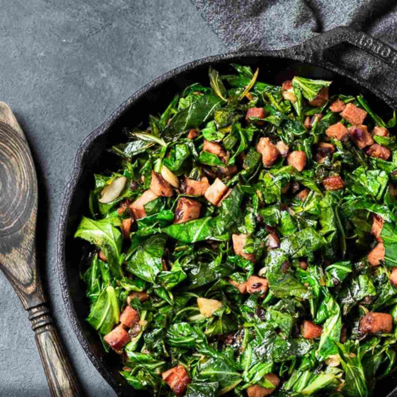 Đun nóng chảo trên lửa vừa, cho thịt heo xông khói vào, đảo đều và áp chảo cho đến khi chín vàng