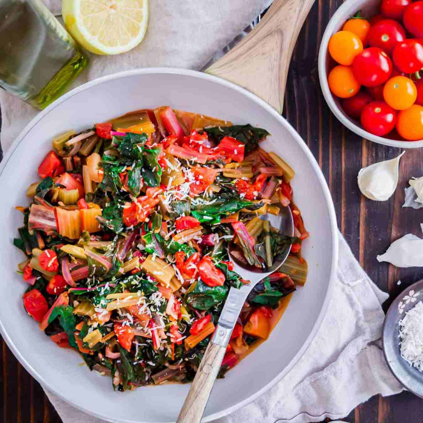 Cho ớt, cải cầu vồng và các nguyên liệu khác vào, nấu trên lửa vừa trong 15 phút nữa, chia ra đĩa và thưởng thức