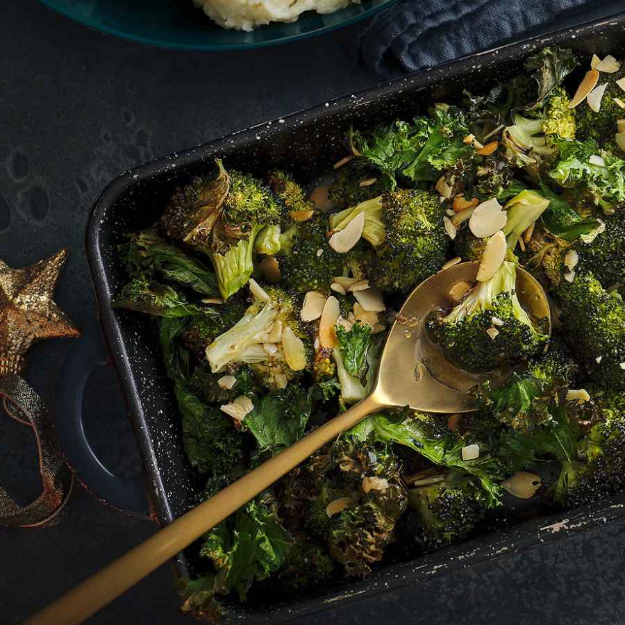 Cải xoăn nướng với cải cầu vồng