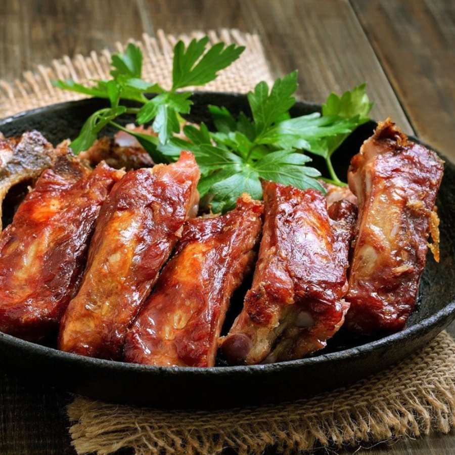 Miếng sườn có màu cánh gián, bóng, thơm mùi hạt tiêu, vị ngọt đậm. Sườn nguyên miếng, còn một ít sốt sánh. Chúc bạn ngon miệng