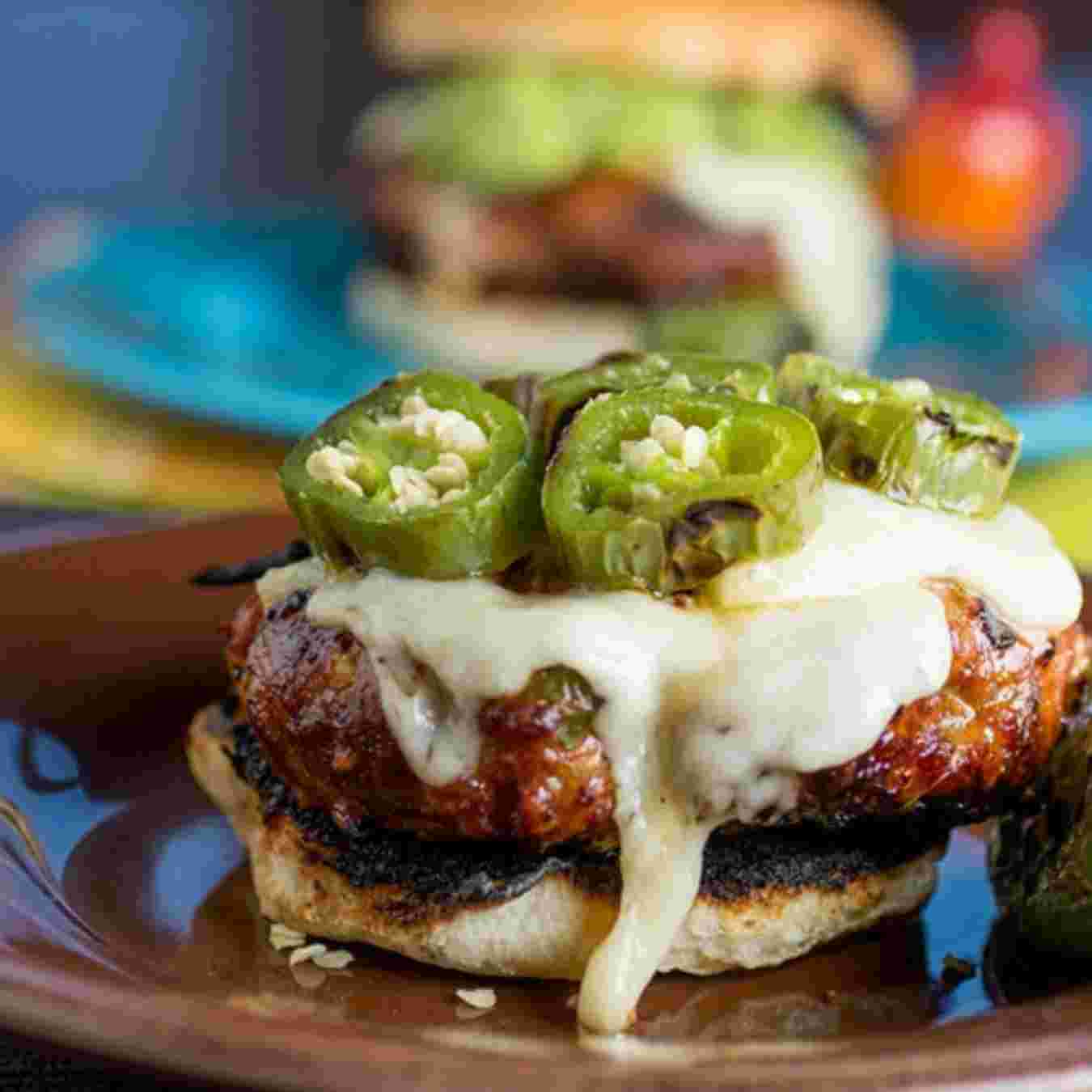 Cách làm chả thịt gà: trộn thịt gà tây và xúc xích Chorizo trong một cái bát. Dùng tay nặn hỗn hợp thành 12 viên chả có kích cỡ vừa và đều nhau. Sau đó nêm muối vào cả hai mặt