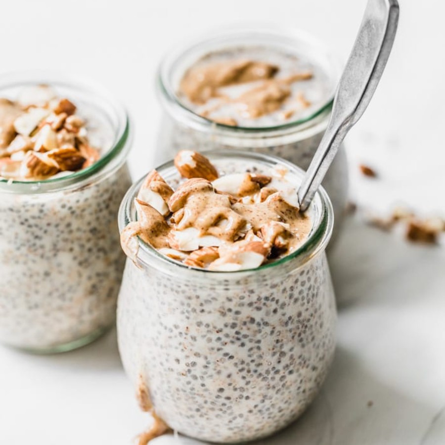 Dùng một chiếc chảo, trộn cơm súp lơ với kem dừa, sữa hạnh nhân và các thành phần nguyên liệu khác, khuấy đều, đun nhỏ lửa và nấu trên lửa vừa trong 20 phút. Chia ra bát và để lạnh trước khi ăn