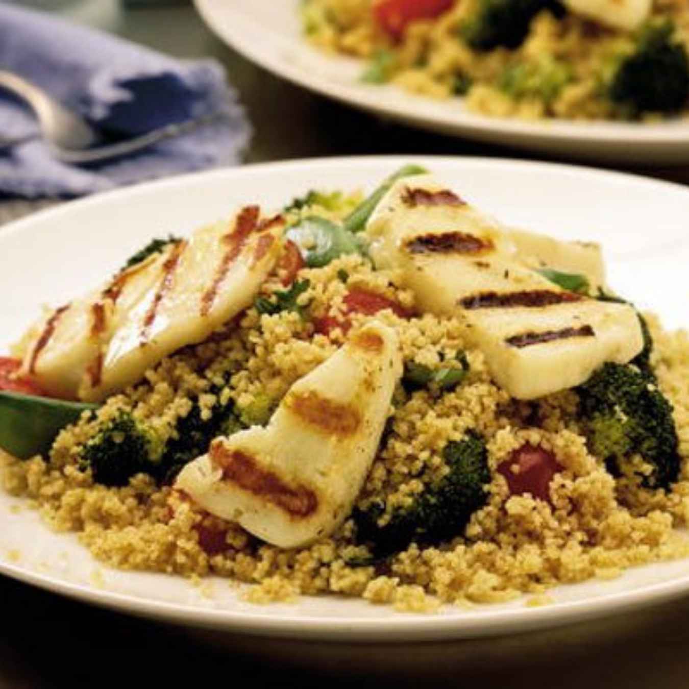 Cắt phô mai Halloumi thành các miếng có kích cỡ khoảng 1cm. Cắt súp lơ xanh thành những bông nhỏ với kích cỡ 2.5cm