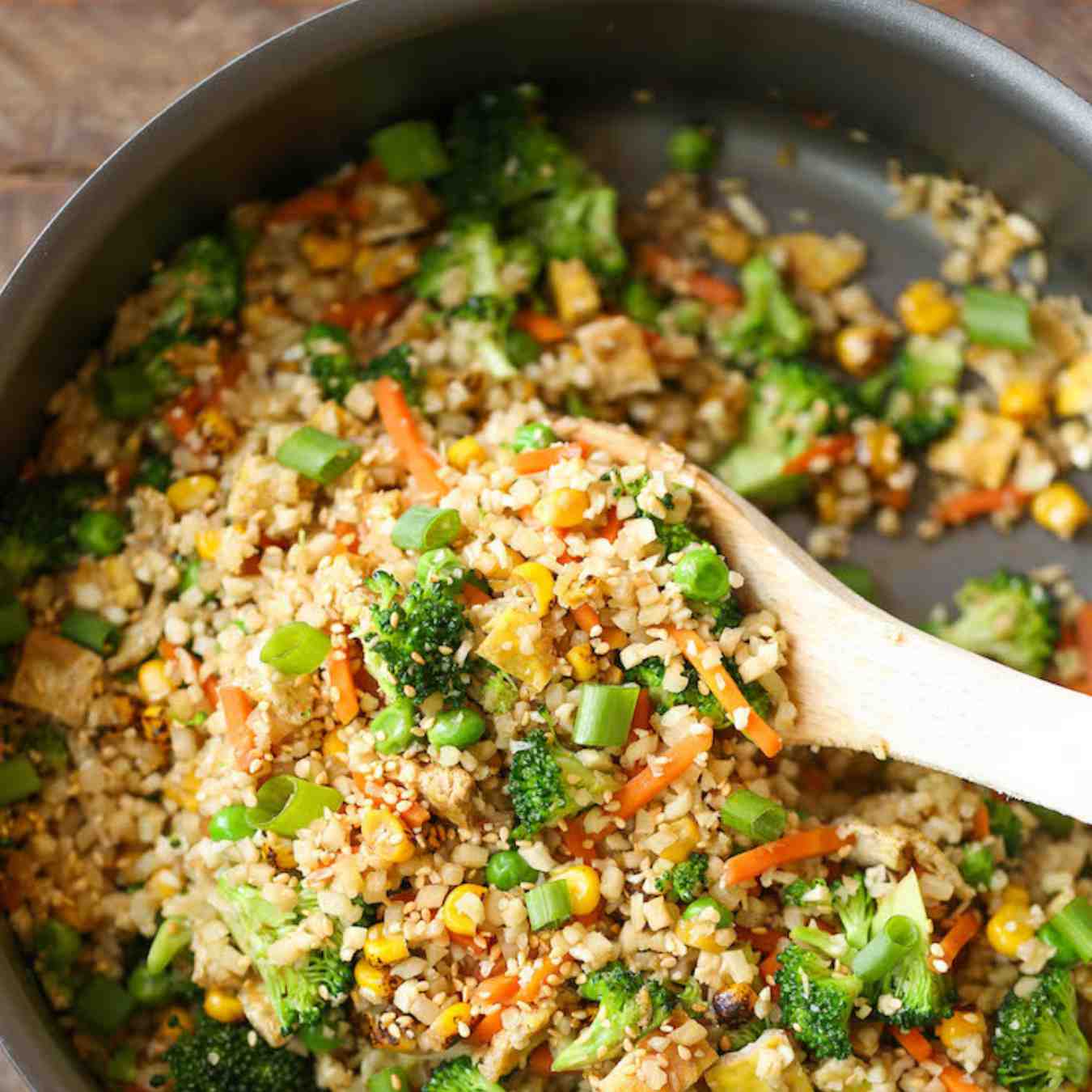 Cho cơm súp lơ và các nguyên liệu khác vào, nấu trên lửa vừa trong 15 phút nữa, chia vào từng bát và dùng cho bữa sáng