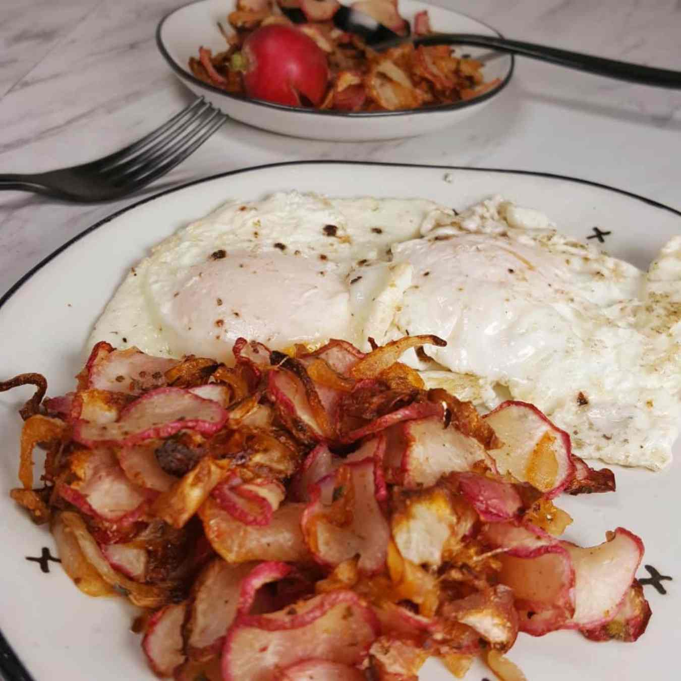 Dùng một cái bát, trộn củ cải với muối, tiêu, hành tây, bột tỏi, trứng, phô mai Parmesan và trộn đều