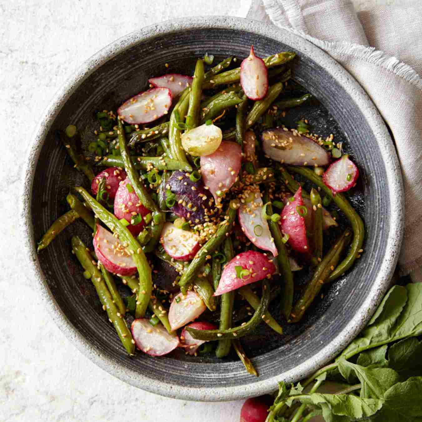 Đậu que nướng với củ cải