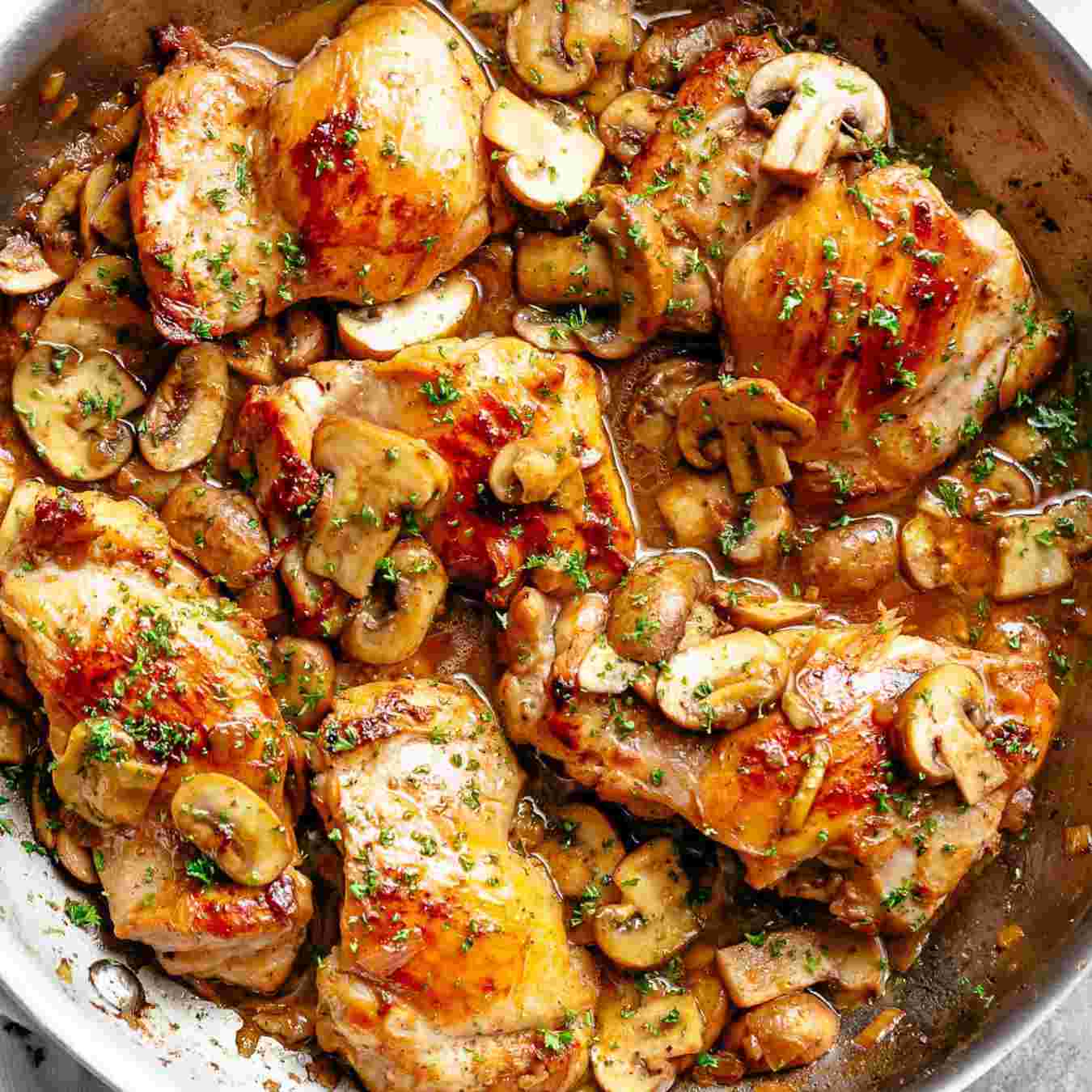 Đun nóng chảo với 1 tbsp bơ ở lửa vừa, cho đùi gà vào, nêm muối tiêu, nướng khoảng 3 phút mỗi mặt rồi xếp ra đĩa