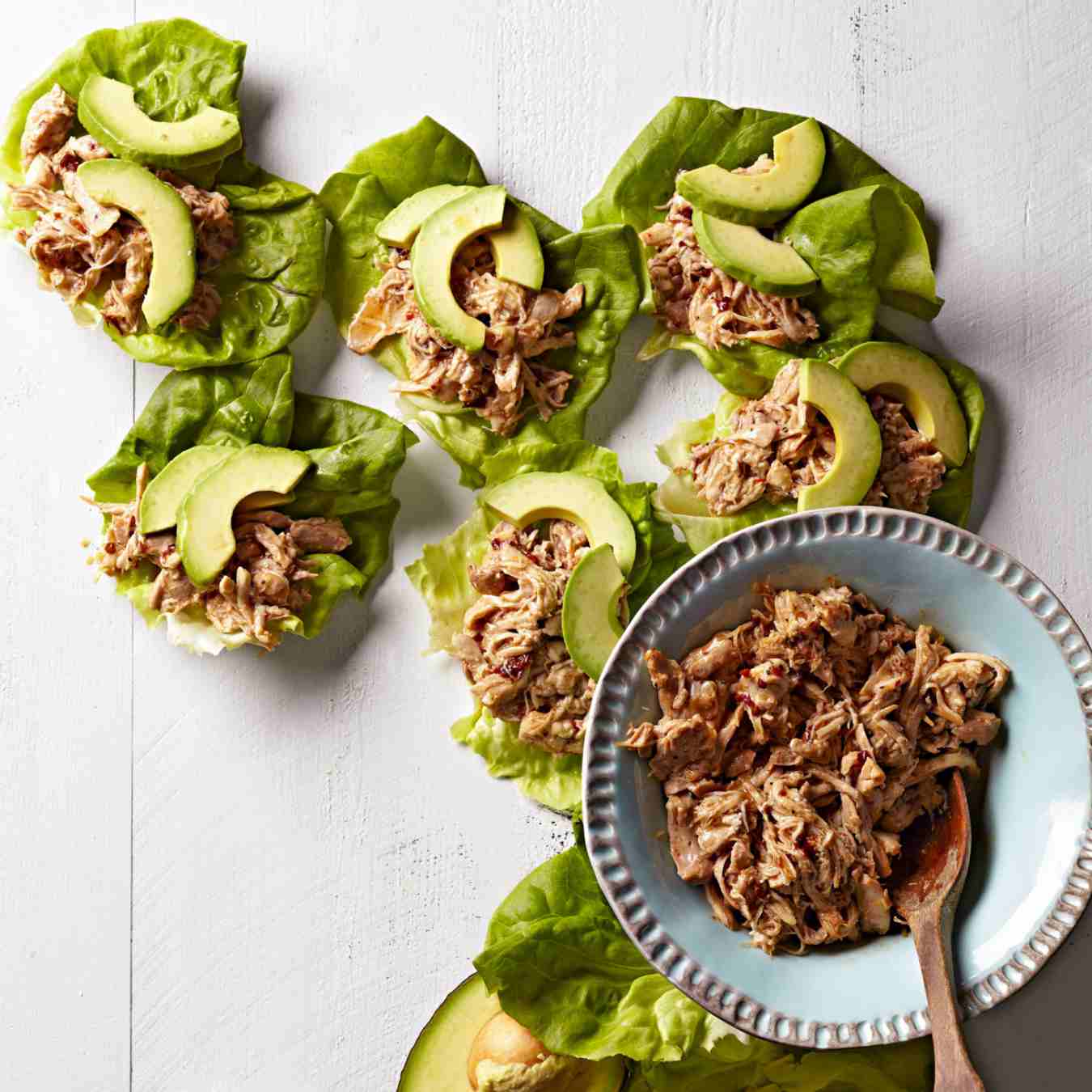 Rưới nước sốt vào 6 khay Ramekin, chia thịt gà và bơ vào để thưởng thức