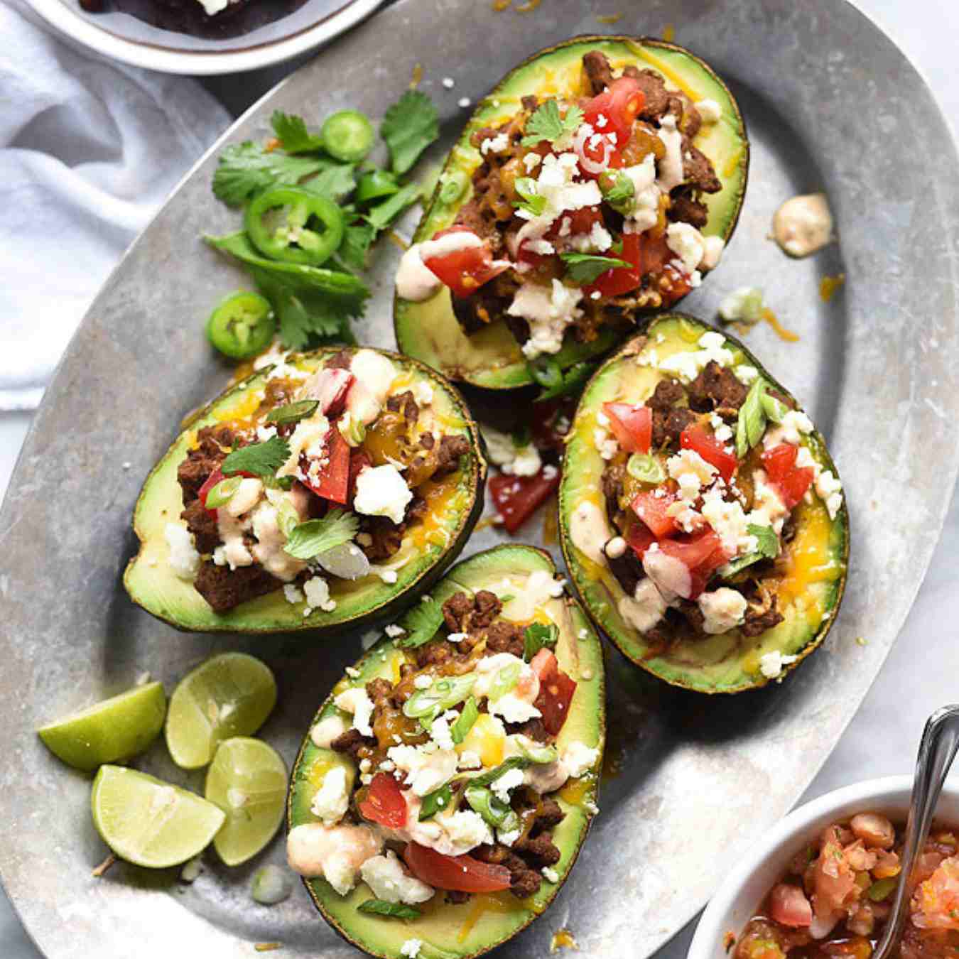 Nhồi quả bơ với hỗn hợp thịt gà và thưởng thức