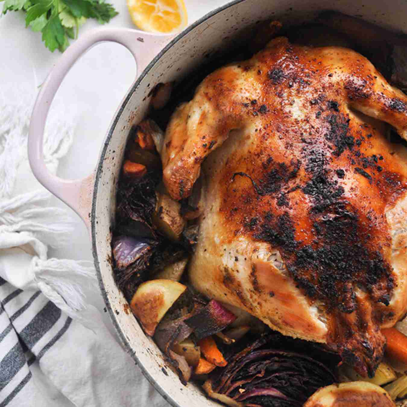 Ướp gà với một nửa lượng dầu, bột tỏi, muối, tiêu, gia vị Ý và bột hành. Rưới phần dầu còn lại vào nồi sau đó thả gà vào