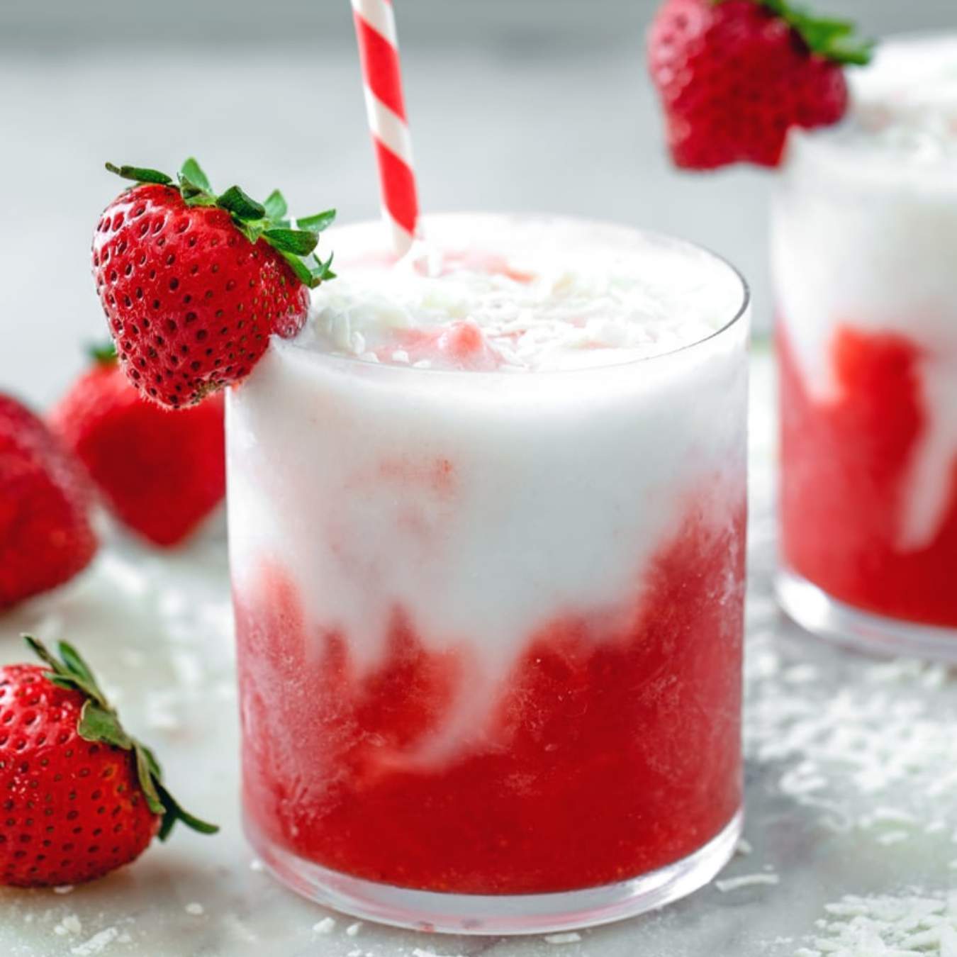 Thêm dâu tây, trộn nhẹ nhàng tạo thành hỗn hợp rồi chia vào các ly và thưởng thức lạnh