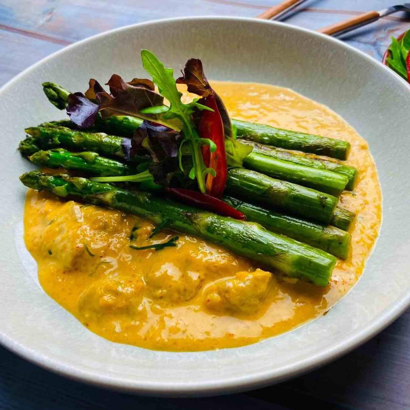 Măng tây áp chảo với sốt cà ri