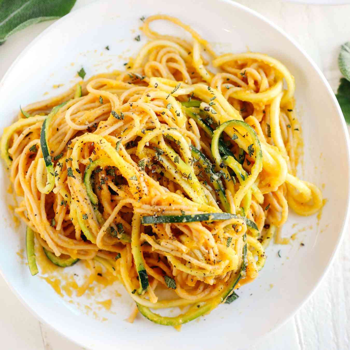 Xếp mì Spaghetti bí ngòi lên khay nướng đã lót sẵn giấy bạc. Thêm các loại bí còn lại với hành tây và ớt chuông. Thêm muối, tiêu, tỏi và hành vào trộn đều