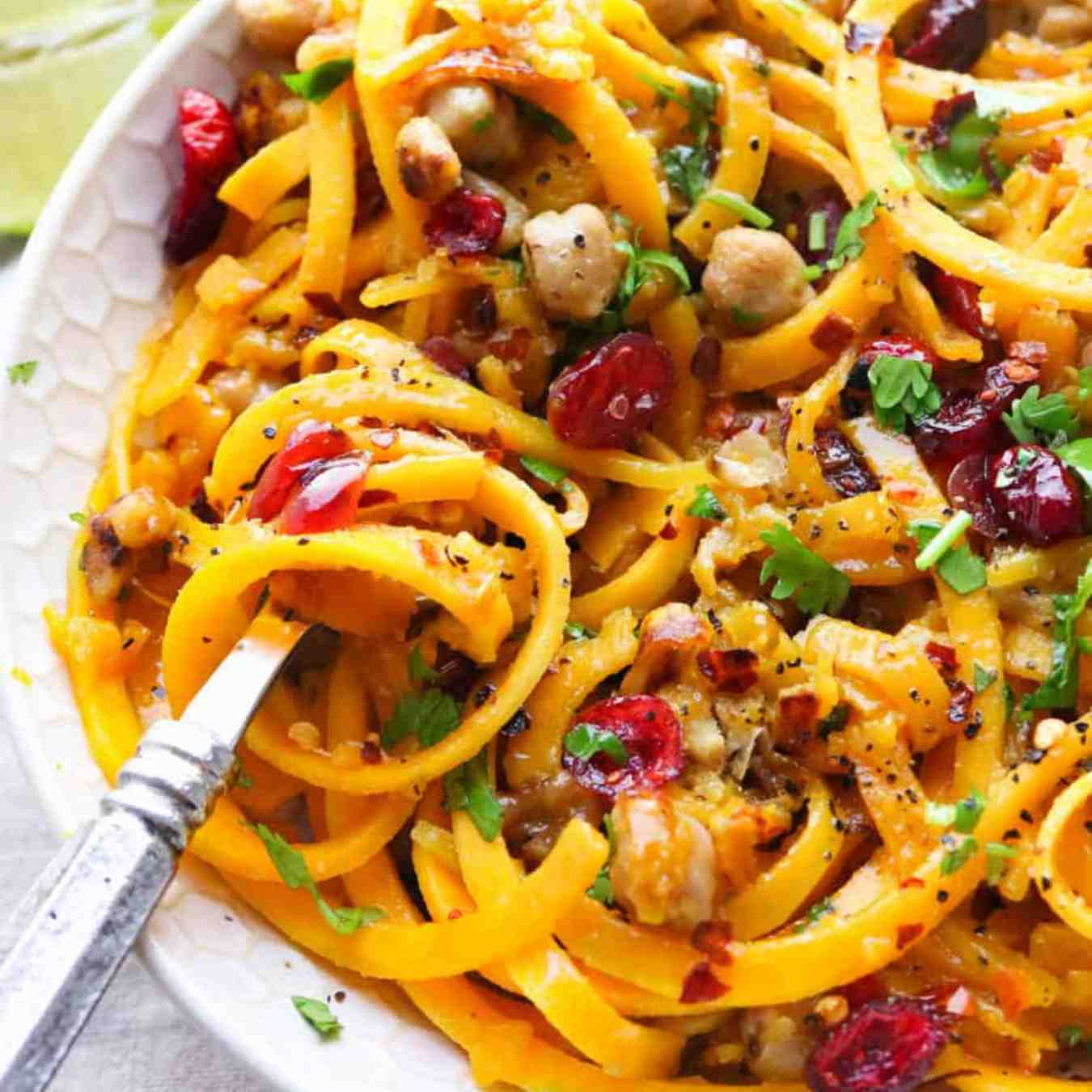 Đun nóng chảo với bơ ở lửa vừa, cho sợi bí Spaghetti vào, đảo đều và nấu trong vài phút