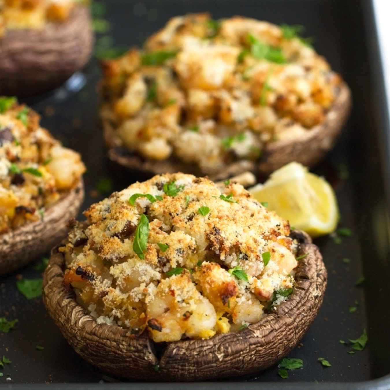 Nhồi hỗn hợp trên vào nấm, đặt lên khay nướng và nướng trong lò ở nhiệt độ 175ºC (350ºF) trong 20 phút
