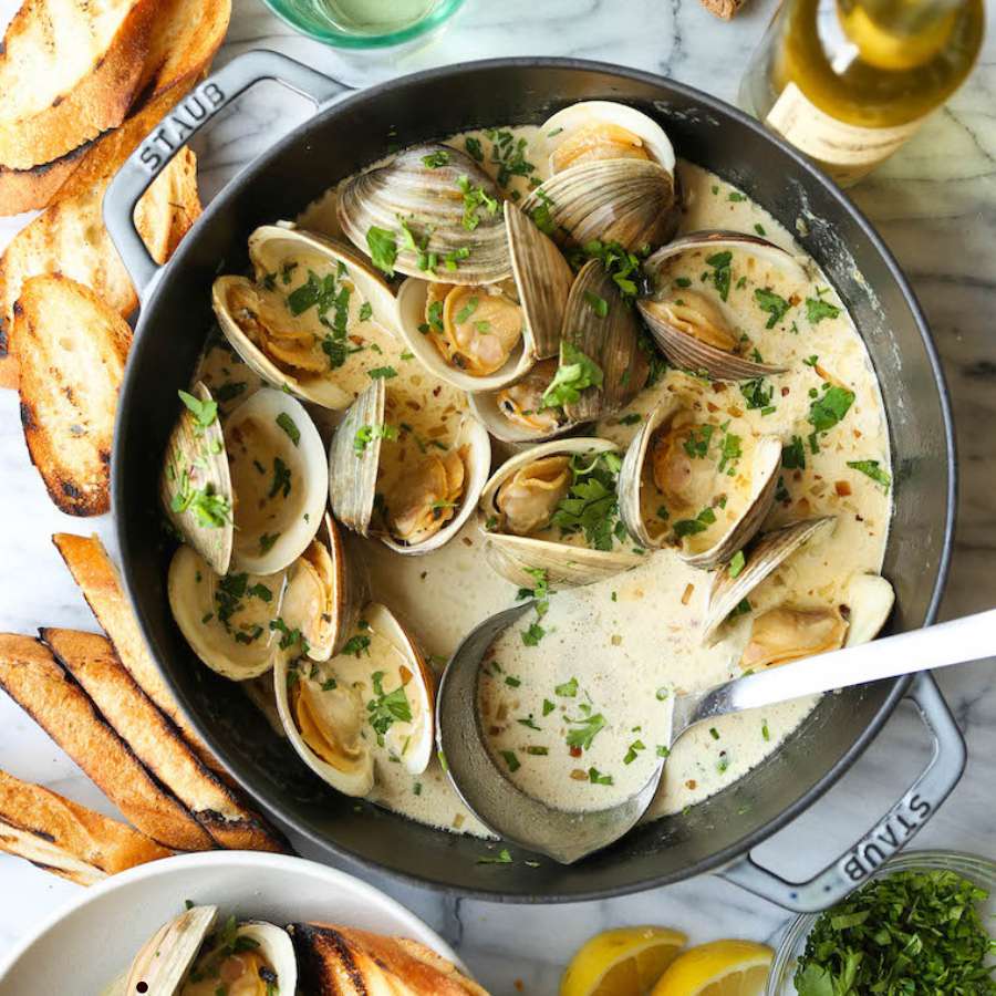 Bỏ hết ngao chưa mở nắp, múc hỗn hợp ngao còn lại vào bát và thưởng thức