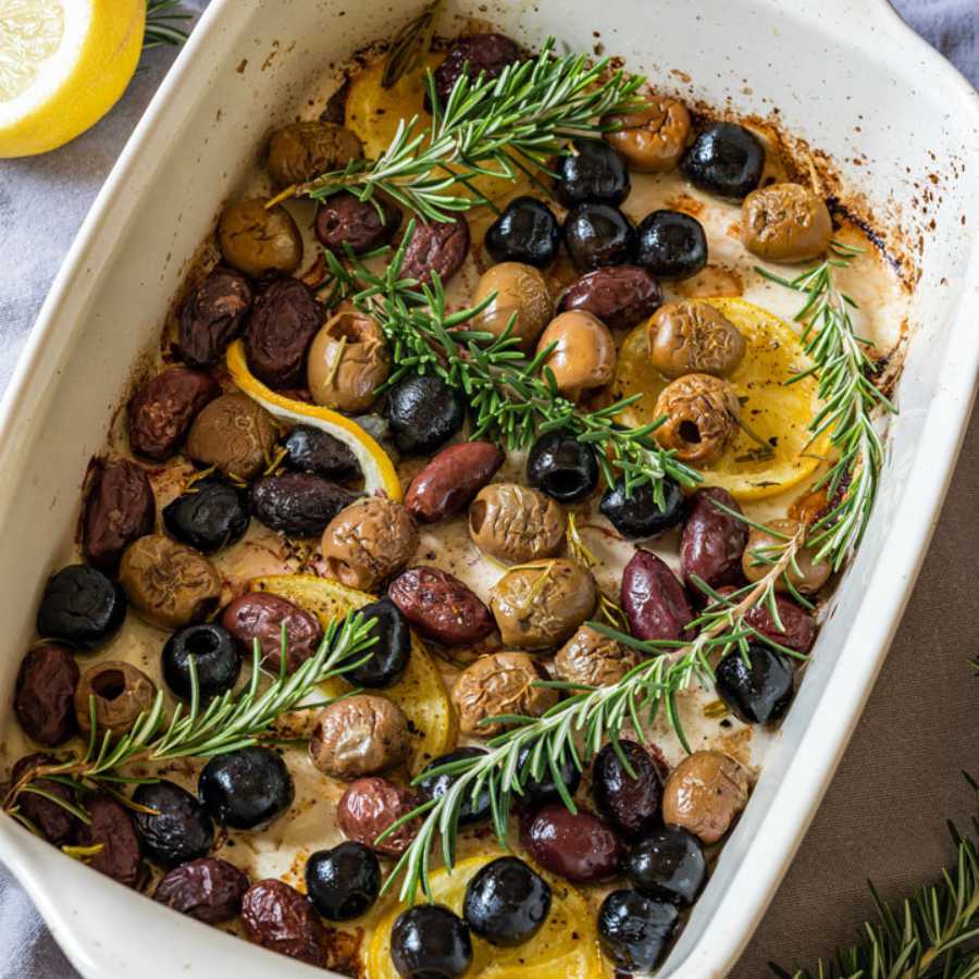 Dùng một cái bát, trộn ôliu với dầu ăn, phô mai hạt điều và các nguyên liệu khác, trộn đều, trải lên khay nướng có lót sẵn giấy nến và nướng ở nhiệt độ 200℃ trong 15 phút. Chia ôliu ra bát và dùng để ăn nhẹ