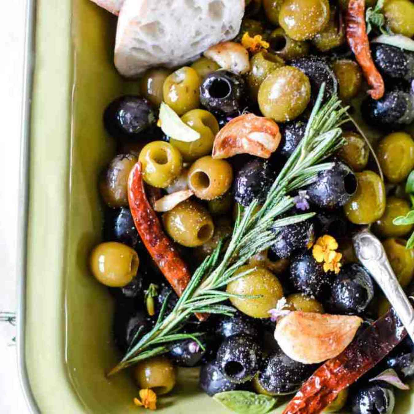 Thêm ôliu và các thành phần nguyên liệu khác, đảo đều, đun nhỏ lửa và nấu trên lửa vừa trong 15 phút nữa