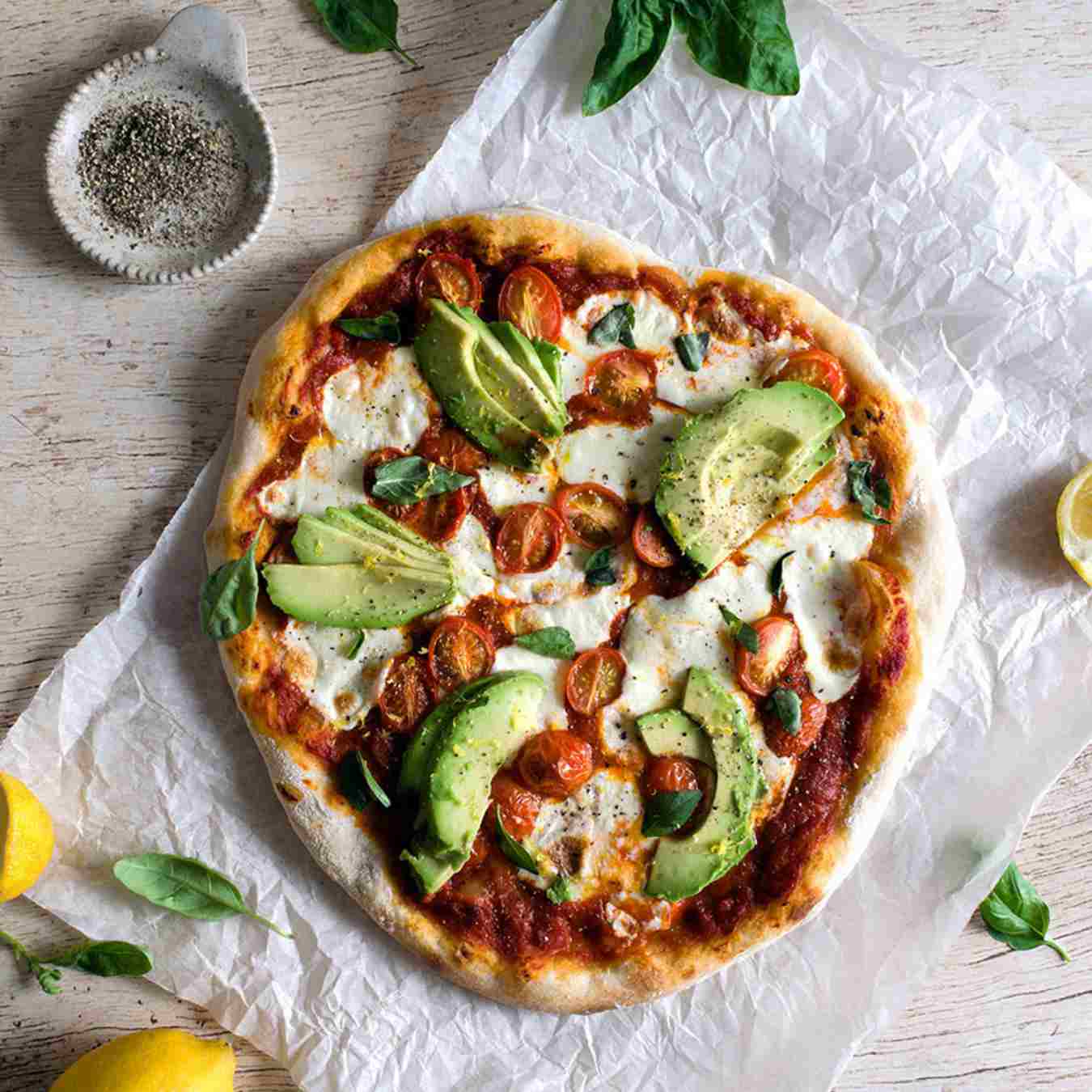 Pizza cà chua với trái bơ