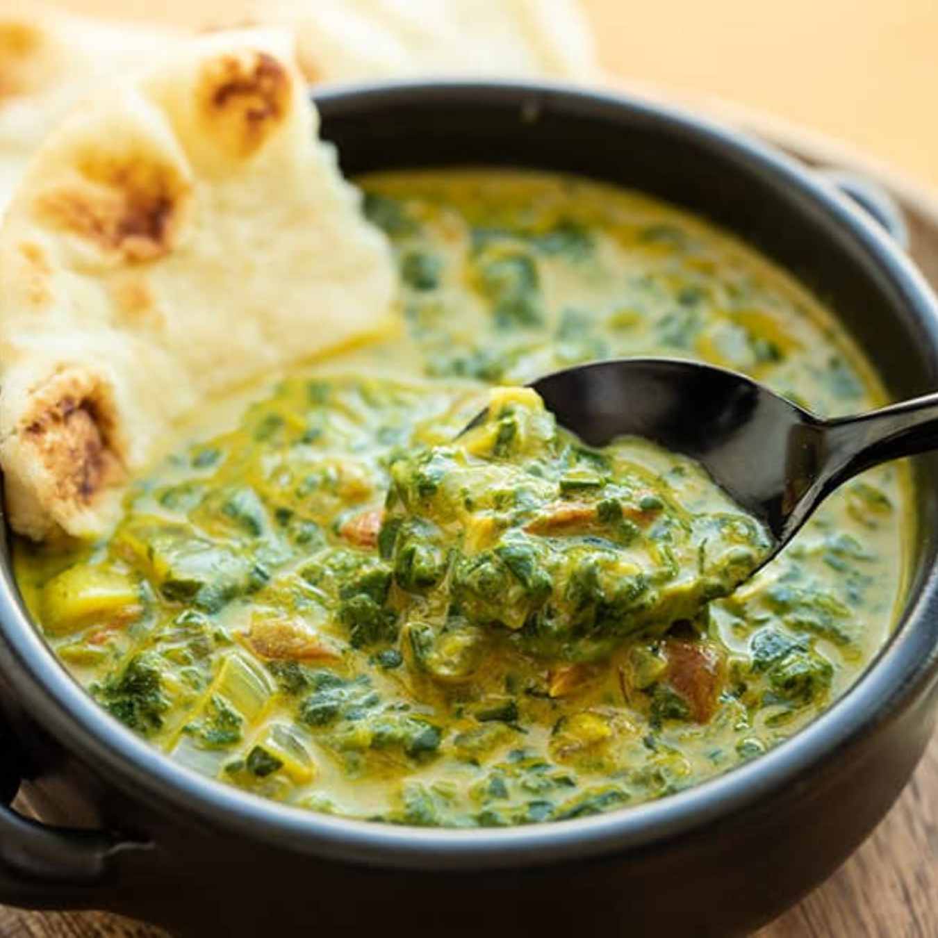 Cho nước và rau chân vịt vào, trộn đều, nấu thêm 10 phút. Chia ra bát và thưởng thức