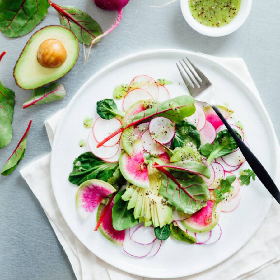 Dùng một cái bát salad, trộn rau chân vịt với trái bơ, dầu ăn và các nguyên liệu khác, trộn đều và thưởng thức