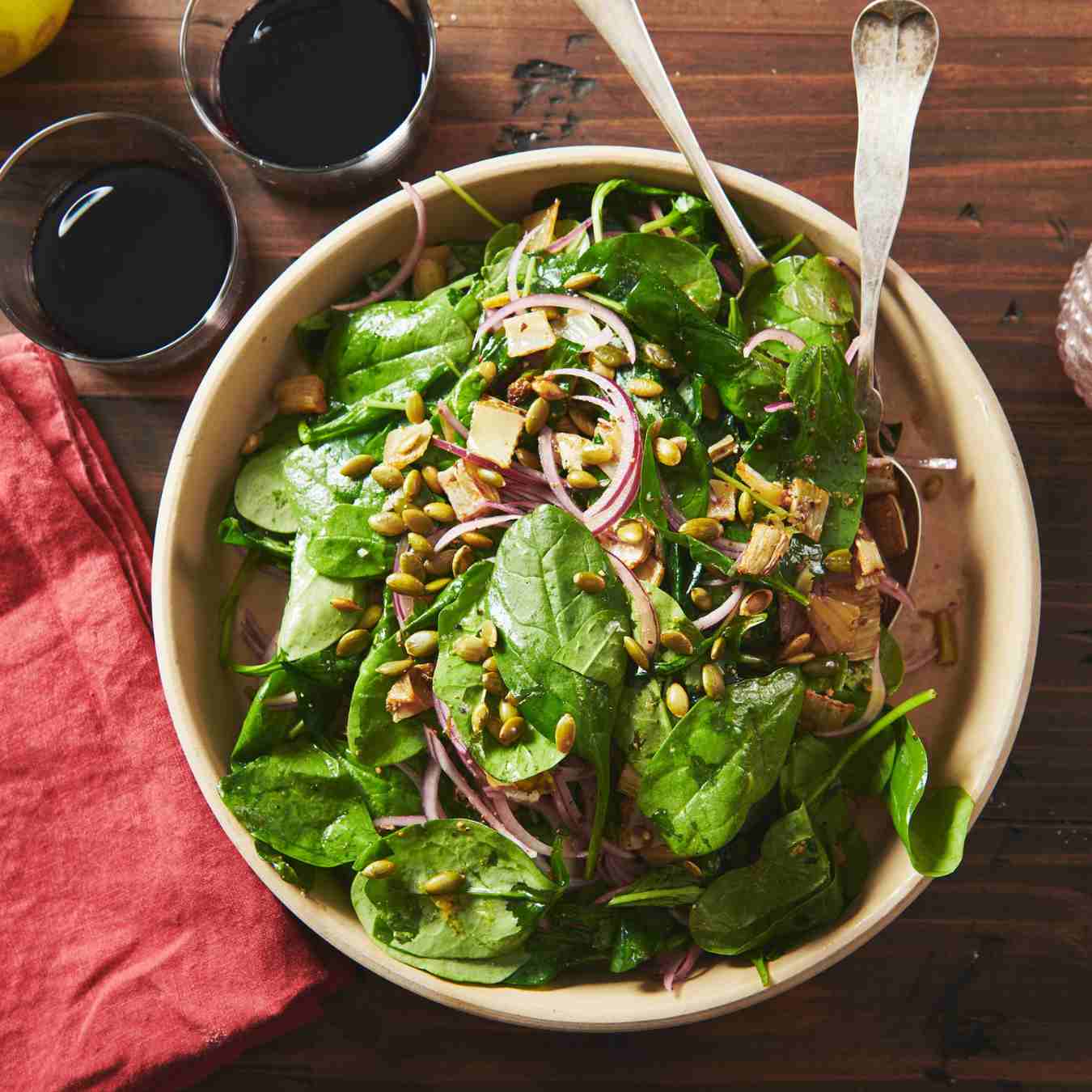 Dùng một cái bát, cho tiểu hồi với rau chân vịt, hẹ tây và các thành phần khác vào, trộn đều, để sang một bên trong 10 phút cho ngấm rồi thưởng thức
