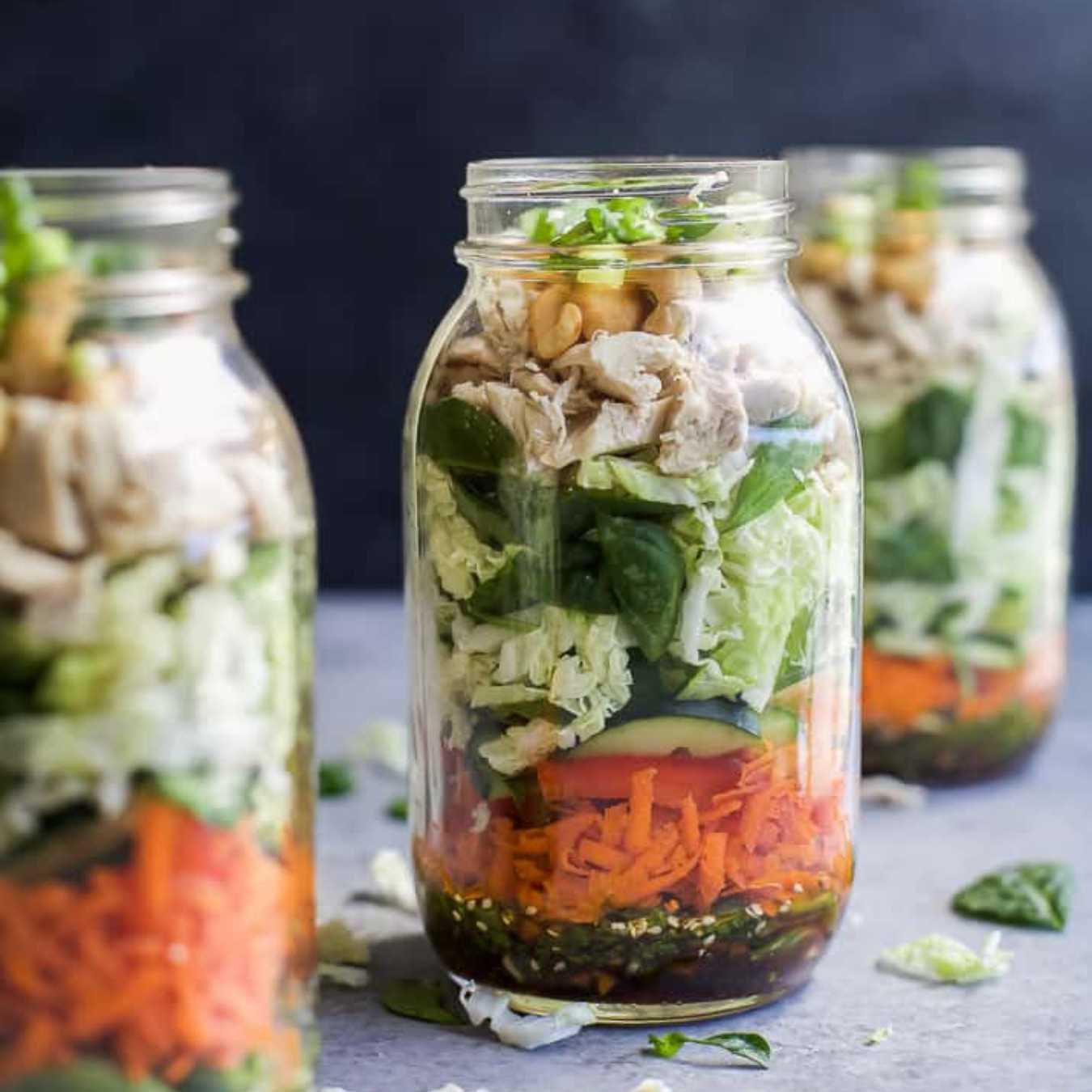 Cho tất cả nguyên liệu vào một cái lọ, xếp trên cùng đặt miếng gà và thưởng thức