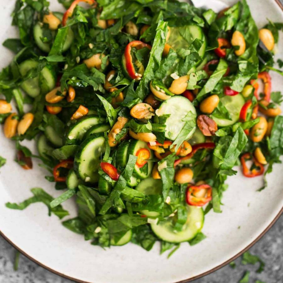 Salad rau chân vịt hạt thông với dưa chuột