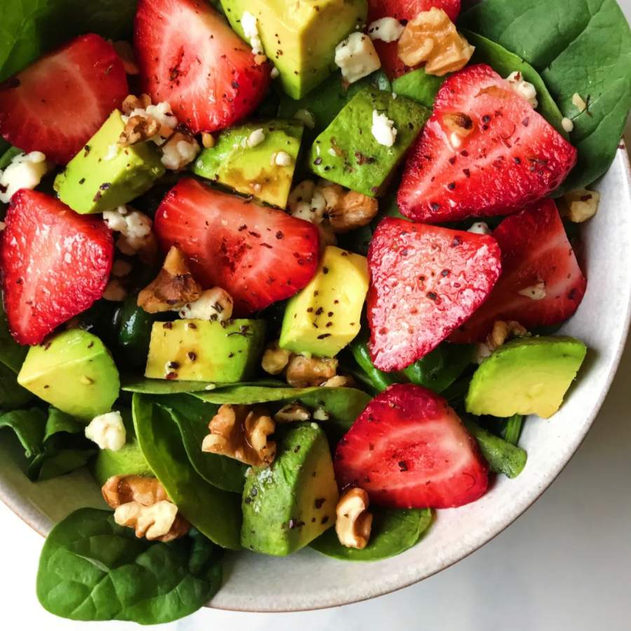 Salad trái bơ dâu tây
