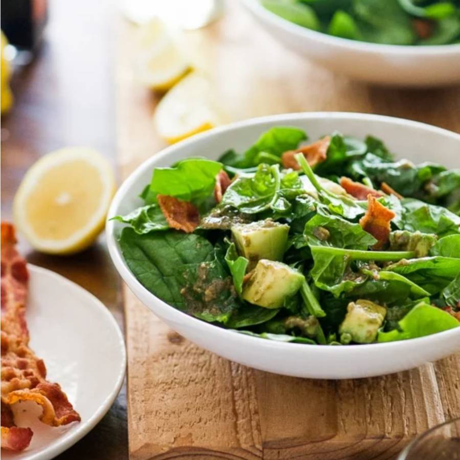 Salad trái bơ rau chân vịt đậu que