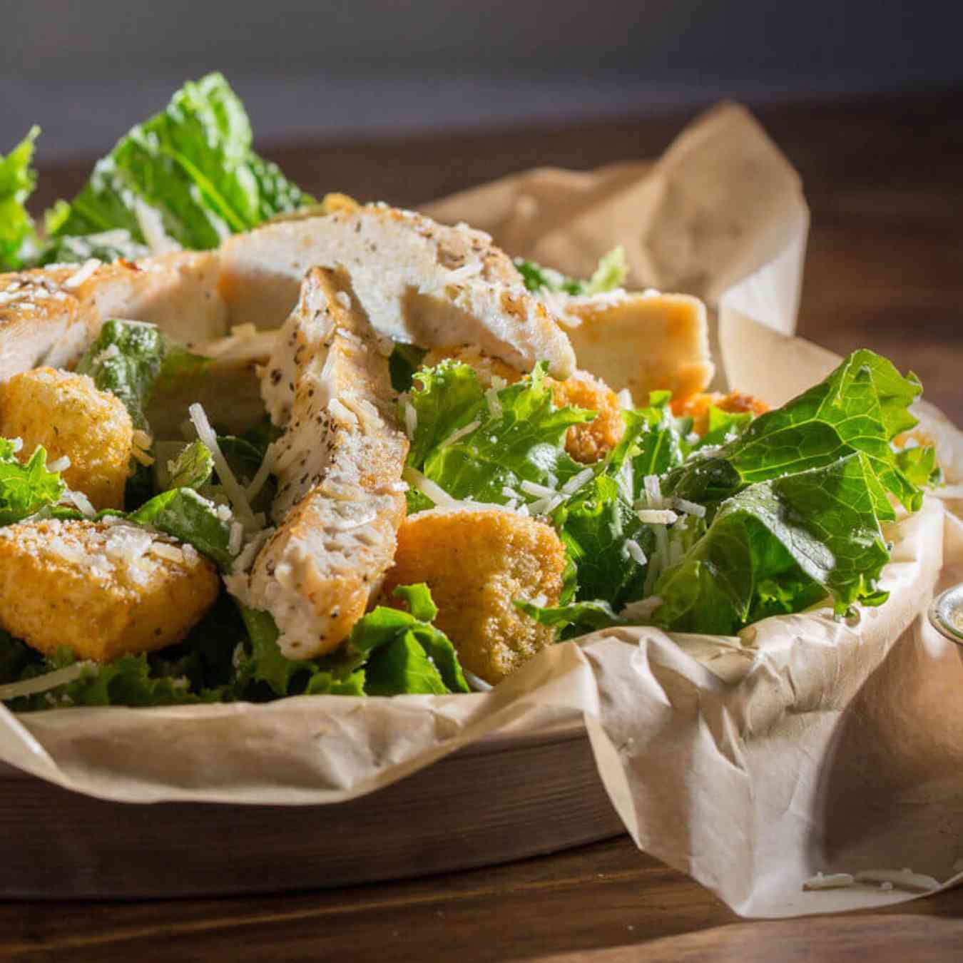 Cắt đôi quả cà chua. Nhẹ nhàng tách cho hết hạt và sau đó thái hạt lựu và cho vào món salad. Sau đó cho thêm lá xà lách
