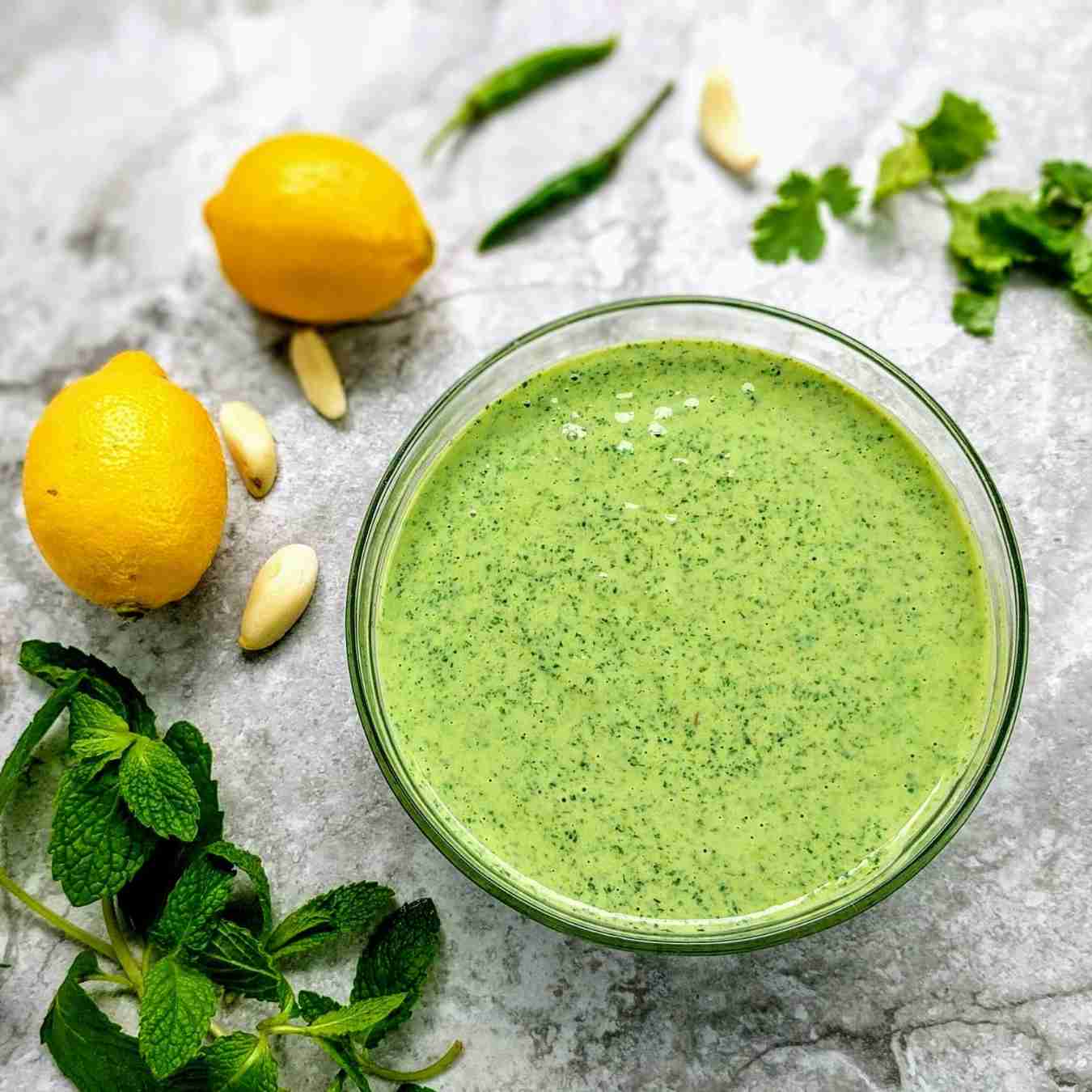 Cho lá bạc hà và ngò vào máy xay thực phẩm và xay nhuyễn