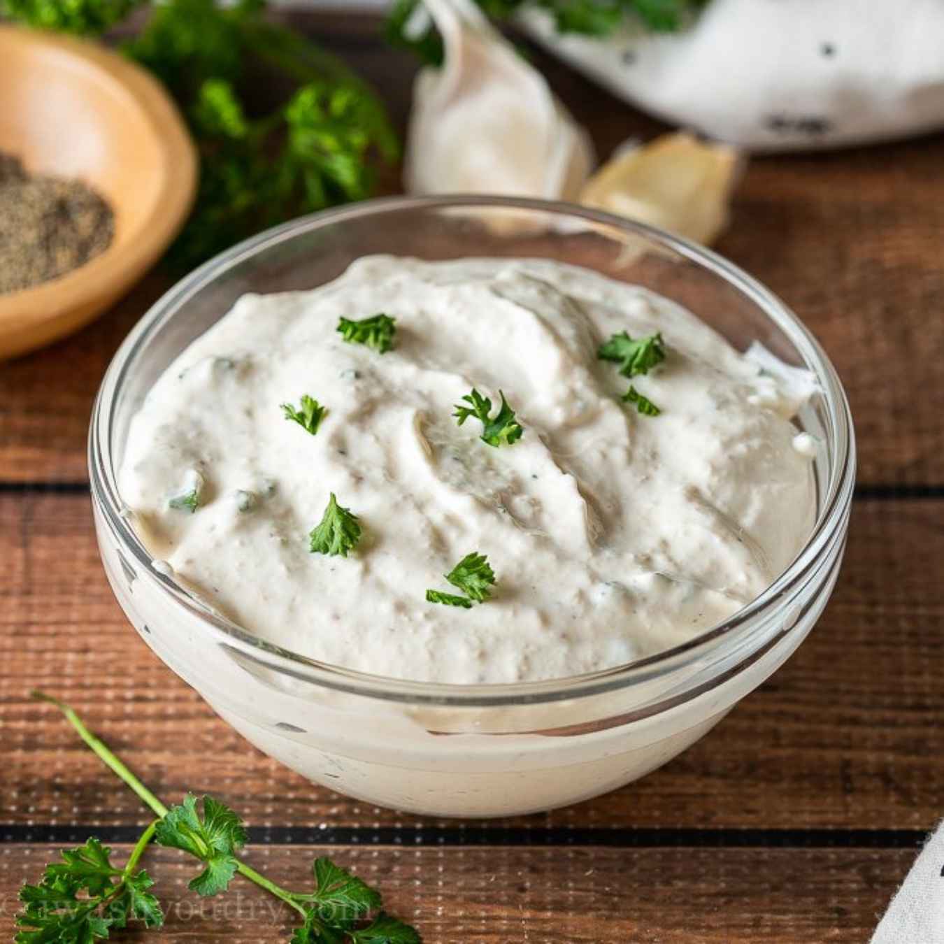 Trộn tất cả các nguyên liệu làm nước sốt cải ngựa trong một cái bát nhỏ