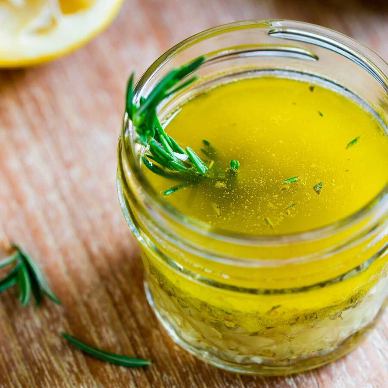 Trộn 4 thành phần đầu tiên trong một cái bát nhỏ, sau đó trộn với dầu ôliu