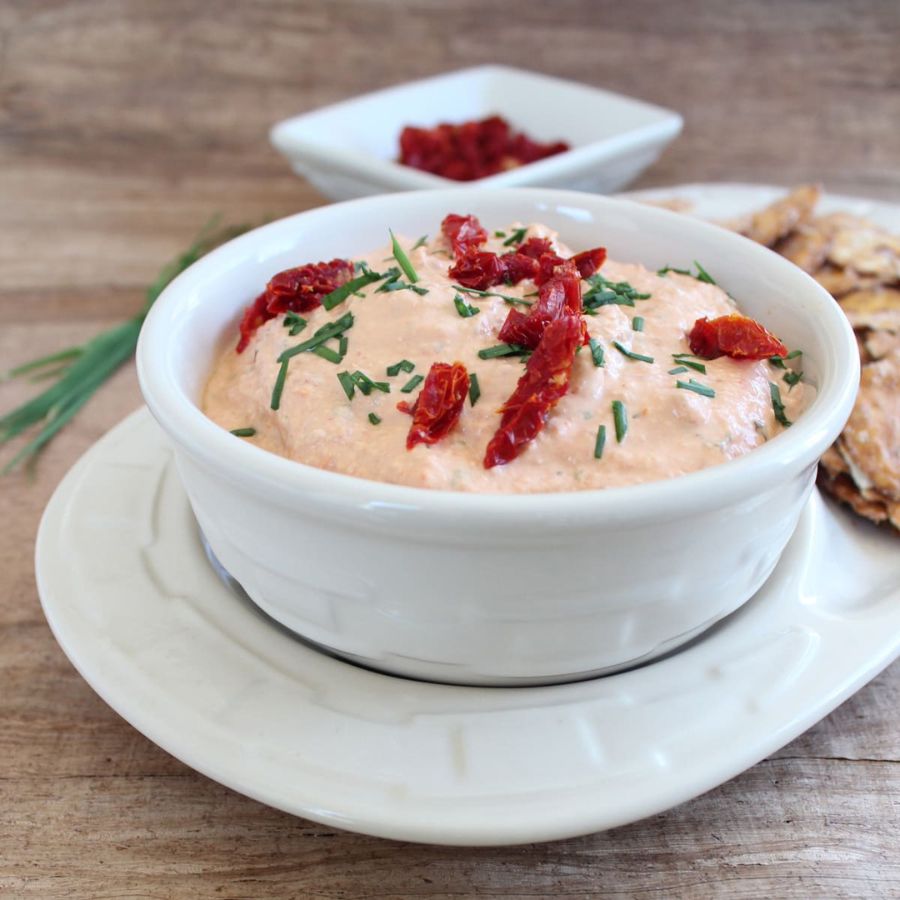 Dùng một cái bát, trộn kem dừa với cà chua, húng quế và các thành phần nguyên liệu khác, đánh đều, chia vào các bát nhỏ và dùng làm sốt chấm