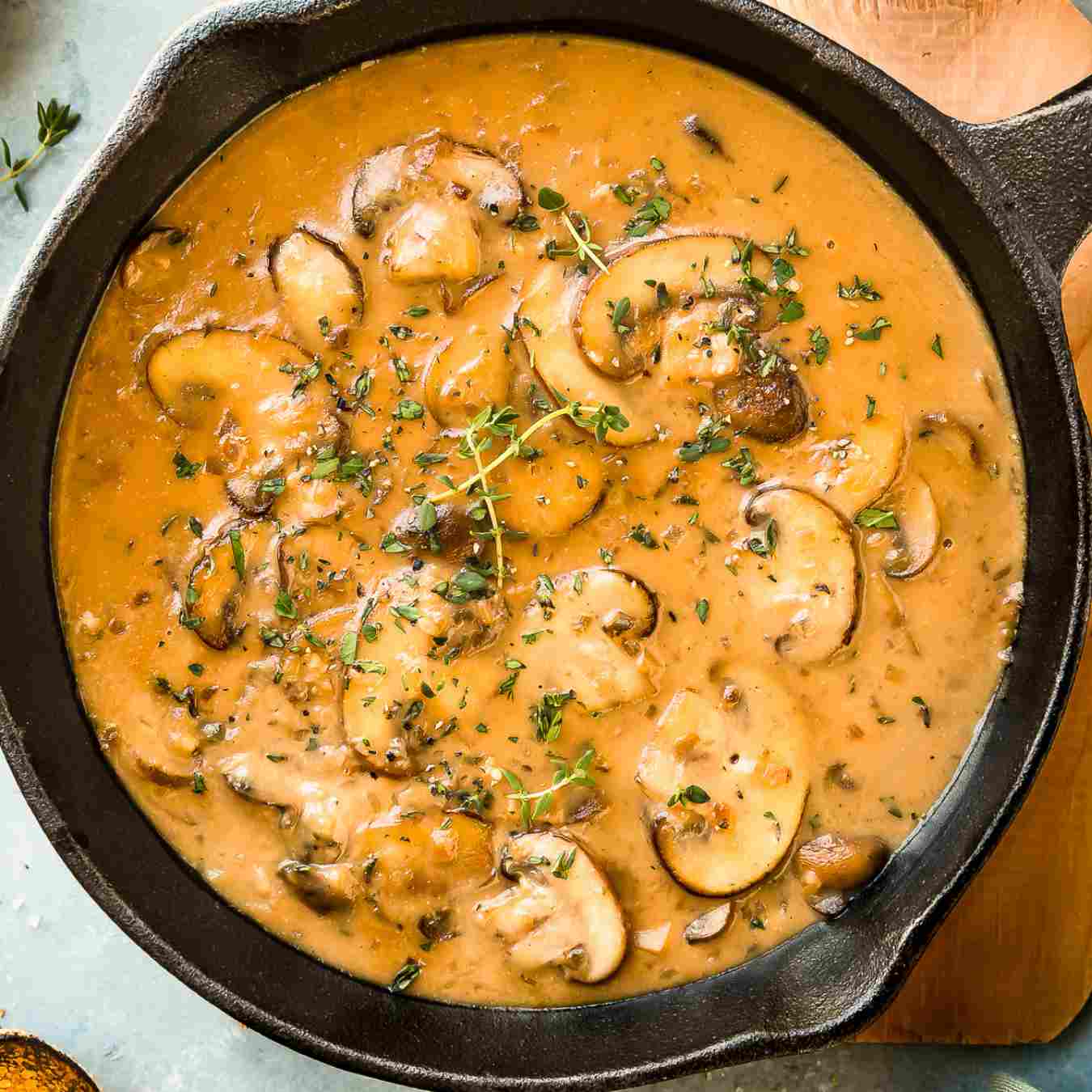 Để sốt đặc hơn, thêm kem tươi hoặc nước cốt dừa và đun nhỏ lửa thêm vài phút (hoặc chỉ cần thêm một chút bơ). Trang trí với mùi tây