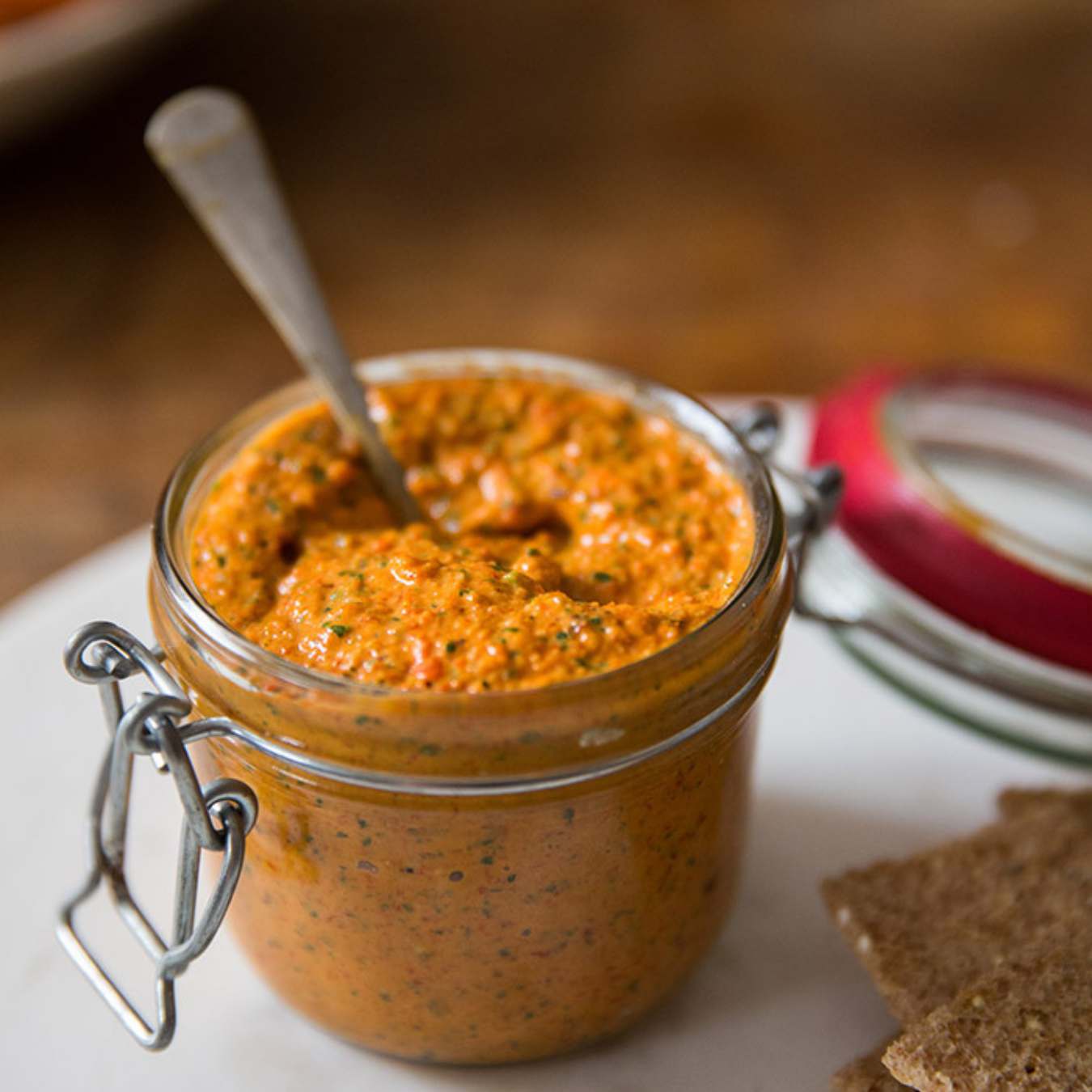 Thêm các thành phần còn lại, bao gồm cả ớt rang và xay tiếp cho đến khi mịn
