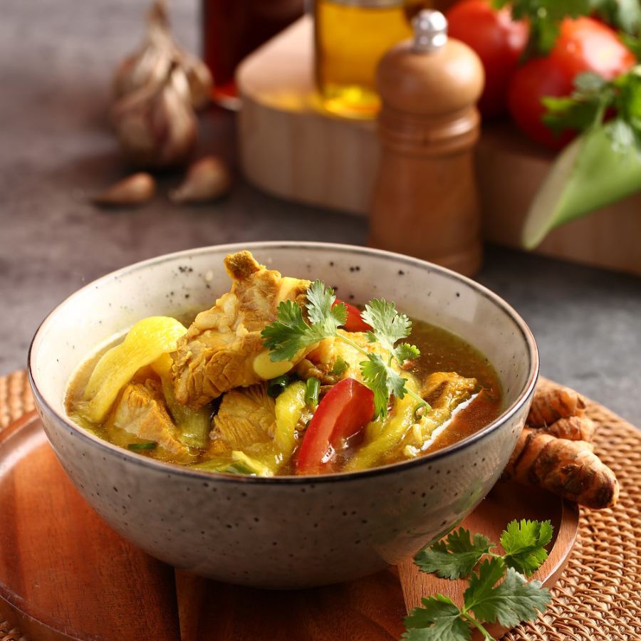 Cho đu đủ và chuối xanh vào nồi sườn, nêm nghệ, mẻ, nước mắm cho vừa, cho cà chua, trước khi bắc ra nêm mì chính, thả dọc mùng đun sôi, bắc ra cho hành và mùi tàu. Ăn nóng với cơm súp lơ hoặc bún Shirataki
